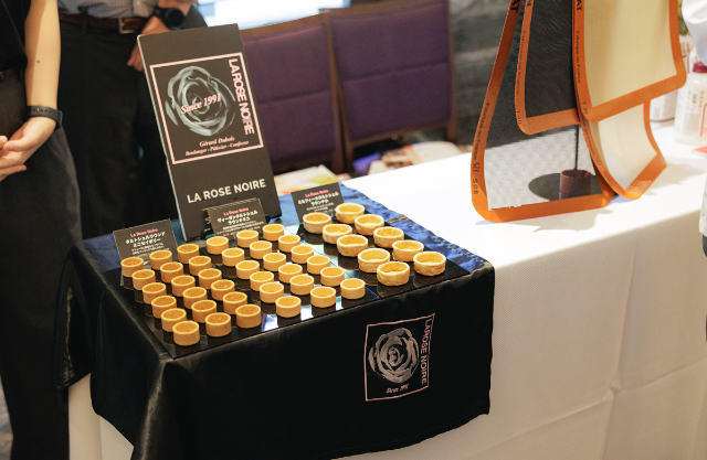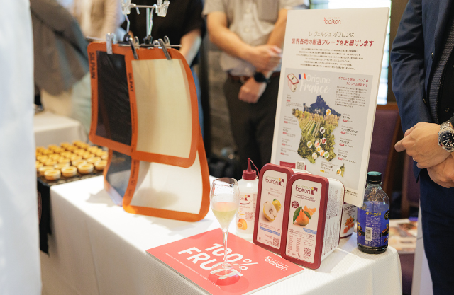 カクテルタイムでは、会場にお越しいただいたレストラン関係者やシェフの皆さまに、弊社が協賛する「メゾン ドゥ マール」のシルパン・シルパット、「レ・ヴェルジェ・ボワロン 」の冷凍フルーツピューレ、「ラ ローズ ノワール」のタルトなどをご紹介いたしました。