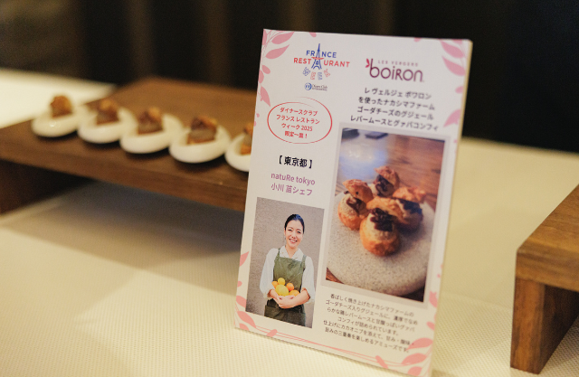 また、本年度の注目シェフの一人である natuRe tokyo の小川 苗シェフと「レ・ヴェルジェ・ボワロン」がコラボレーションした、限定アミューズも試食としてご提供。来場者の皆さまにご好評をいただきました。