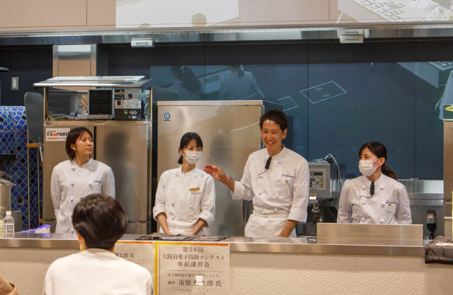 第59回大阪府洋菓子技術コンテストに向けた事前講習会が10月22日、大阪ガスのハグミュージアムで開催されました。会場には若手パティシエから製菓学校の学生まで、20名を超える参加者が集まりました。講師を務めたのは、ホテルグランヴィア大阪の市原健太郎シェフ。今回のコンテストテーマである「冬のショコラ」に沿って、チョコレートの特性を生かしたアントルメの製作ポイントが紹介されました。