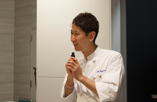 「講習というより実践。質問もしますので準備しておいてください」と語る市原シェフに、参加者は笑顔でうなずきながらも、どこか引き締まった表情に。プロの技術に触れる時間へ向けて、会場の空気が一段と高まっていきました。
