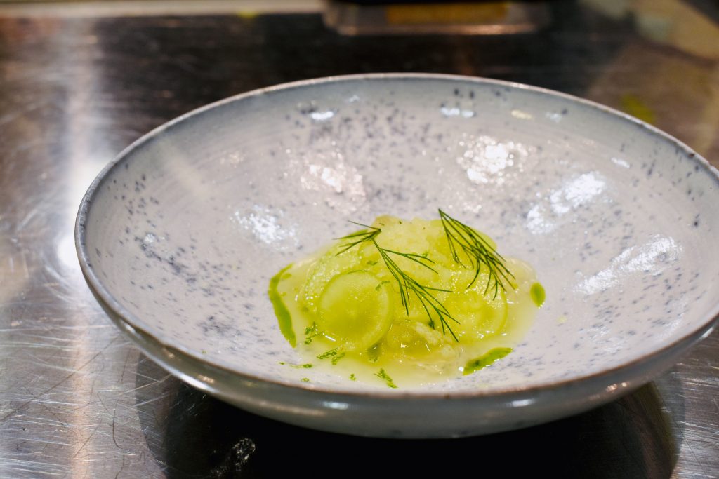 一皿目は、鮮やかなライトグリーンが印象的なアヴァンデセール「ヴェール」。